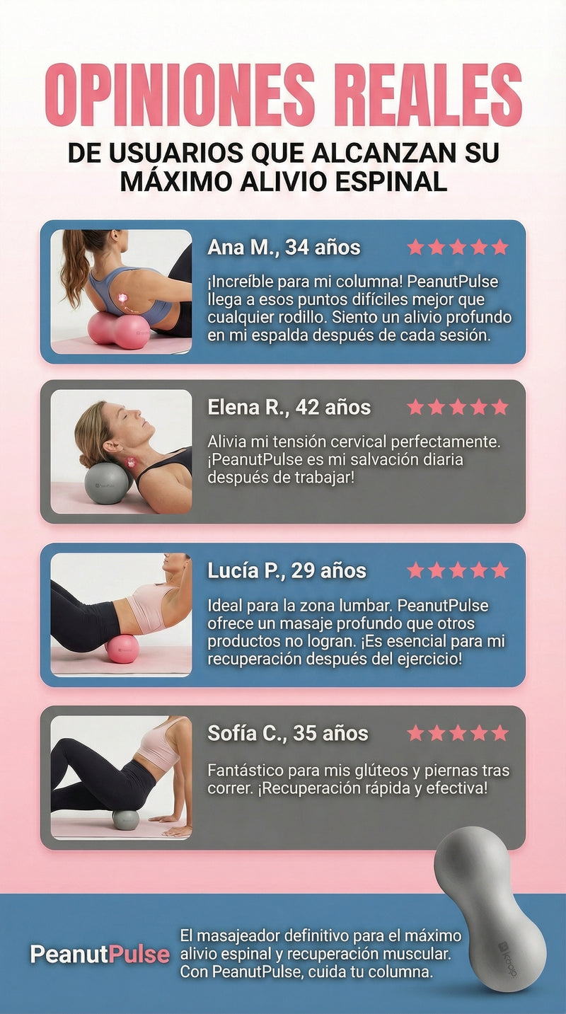 Marta S., Baja Verapaz 02 ENE 2026Comprador verificadoFLEXIBILIDAD Y RELAJACIÓN"Toda mi vida he sufrido de falta de flexibilidad, cada año me sentía mucho más dura que el anterior, con este artículo he podido descomprimir muchas zonas de mi cuerpo. Lo recomiendo totalmente."PeanutPulse™ Masajeador terapéutico profesional + ENVÍO GRATIS 🎁 ¿Te fue útil esto? 42 1
